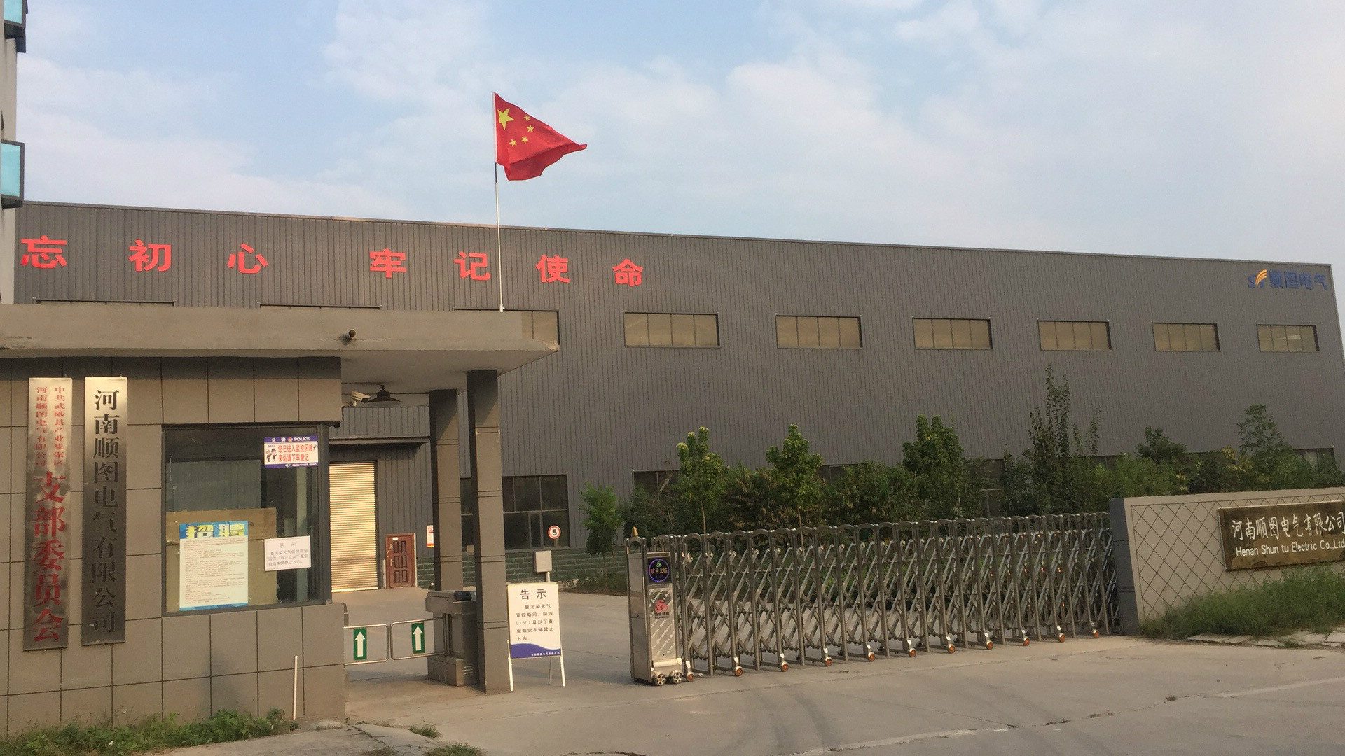 河南顺图电气有限公司是一家专业从事自动化控制柜及各种壳体的生产销售型企业,公司主要经营智能化电气设备、电力控制及电力分配成套设备的设计、生产、销售、维修;工业自控技术开发、技术咨询服务、技术转让;涂装设备、环保设备、非标柜及各种壳体的设计、生产、销售;金属表面喷漆加工;房屋、机械设备租赁;仓储服务(易燃易爆品除外)装卸搬运服务、货物运输服务等。 该厂始建于2016年6月,法人代表刘健,建设项目为年产3万台工业自动化控制柜。公司坐落于人杰地灵的焦作市武陟县产业集聚区建业路南侧,河朔大道与建业路(荆辛庄)交叉口东600米。东临S87郑云高速,南临黄河,西临S309省道,北临武陟高铁站。注册资金为900万元,固定资产1000万元,年产自动化控制柜外壳3万套。占地面积23333.34平方米,建筑面积12450.9平方米。公司现有职工100余人,其中大中专毕业生30人,中级以上职称10人,安全管理人员2人,研发技术人员10人。 公司拥有钣金、喷塑和机械加工等三条生产线,其中数控设备已占据80%。公司已通过ISO9001质量体系认证,并取得环评验收、检测手续,安全现状评价报告,食品经营许可、排污许可等手续和资质。部门设立有行政部、生产部、技术部、质检部、财务部和党支部委员会等。设有安全生产管理小组,义务消防指导小组和事故应急救援小组、重污染天气应对管理小组等。 公司以人为本;以诚信态度做人;以品牌树形象;以服务争第一;先做人,后做事,品质改变世界。