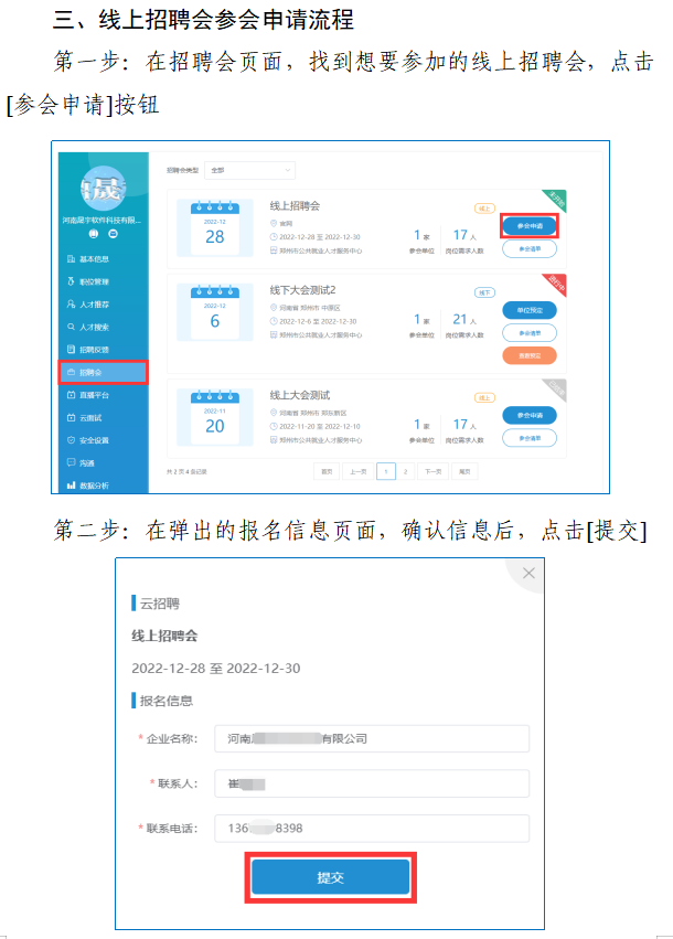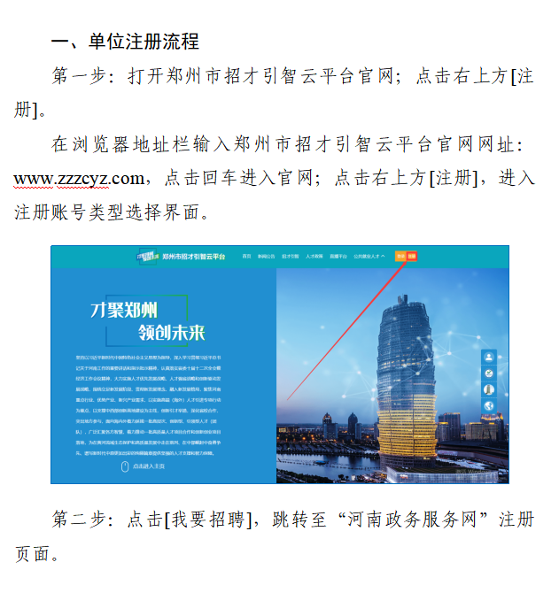 郑州市招才引智云平台参会单位注册及招聘操作手册